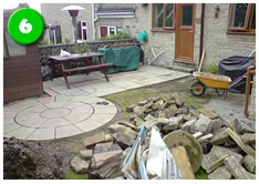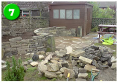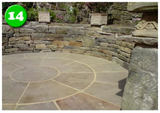 We built up a raised bed using dry stone walling, flowing it nicely around the circular patio area. Providing an area of privacy with planting within the beds providing further cover.