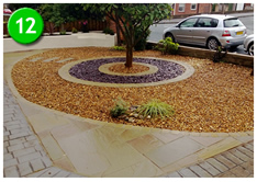Certain elements were symmetrical within the garden, we used the central magnolia tree as a focal point for increasing circles design with alternating aggregates with cobbled borders.