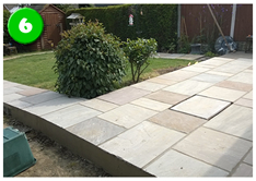 We covered the existing concrete work with high quality sandstone patio material on solid mortar base giving this garden a new attractive makeover.
