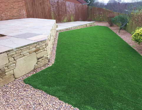 The bushy very natural looking 30mm double spring artificial grass we use incorporates 3 blade hues of green to give the more deep natural colours.