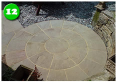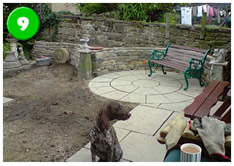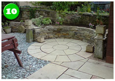 We built up a raised bed using dry stone walling, flowing it nicely around the circular patio area. Providing an area of privacy with planting within the beds providing further cover.