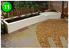 We created a raised bed area for planting incorporating a seating area down one side of the garden.