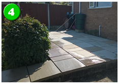 We covered the existing concrete work with high quality sandstone patio material on solid mortar base giving this garden a new attractive makeover.