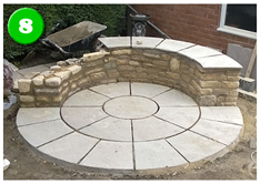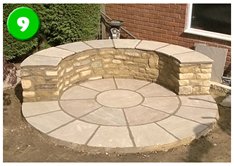 We also installed a secondary patio circle sitting area with integrated pergola. We used half of the outer circle as a raised seating area sat on a mortared curved stone wall, an attractive and interesting solution to add creativity to this area.