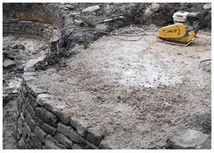 We lay patios for our customers around Penistone & Barnsley, providing a quality area to entertain in summer within their garden environment . A properly laid patio should always involve careful preparation of the ground area with hardcore stone 'crusher run', which is leveled and compacted using an industrial standard whacker (vibrating) plate (below). |