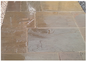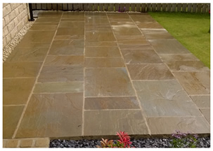 Large patio area created using raj Green Indian Sandstone material. Perfectly laid patio. |